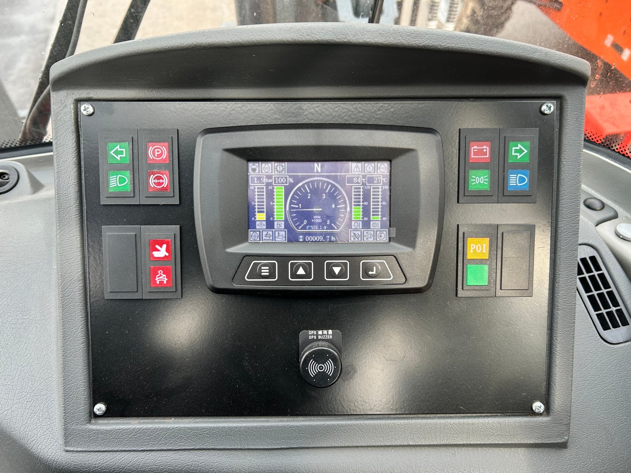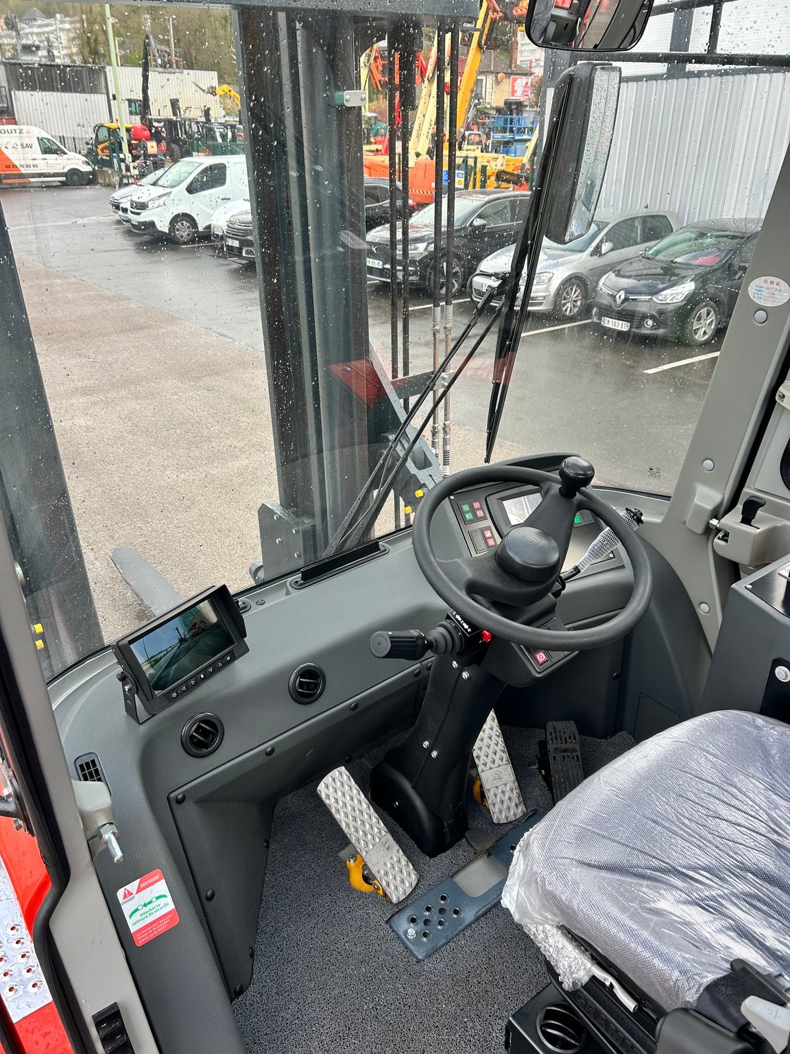 | Équipements | Positionneur de fourches, 4 voies hydrauliques, TDL (déplacement latéral), Prise USB |