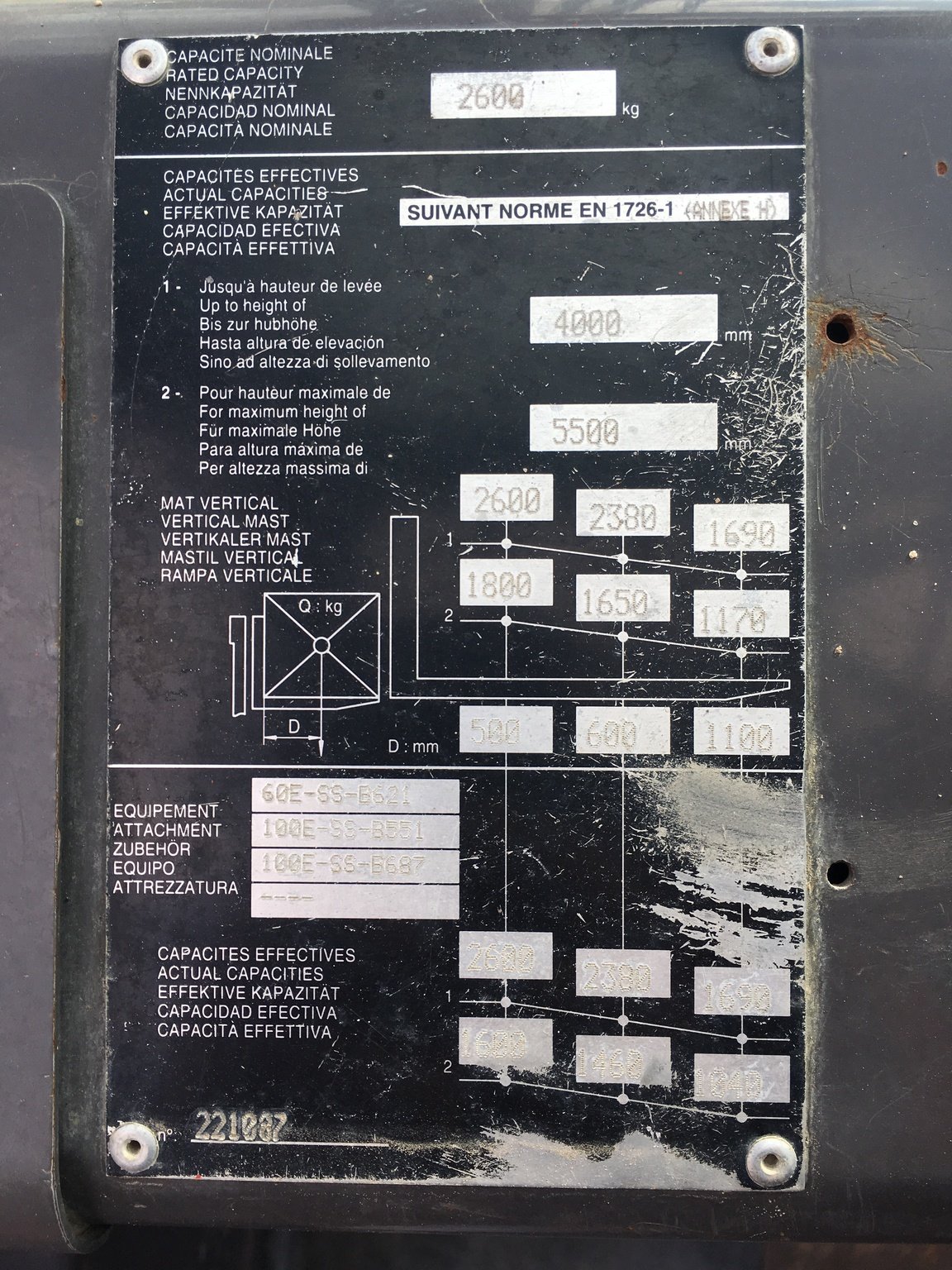 | Capacité nominale | 2600 kg |