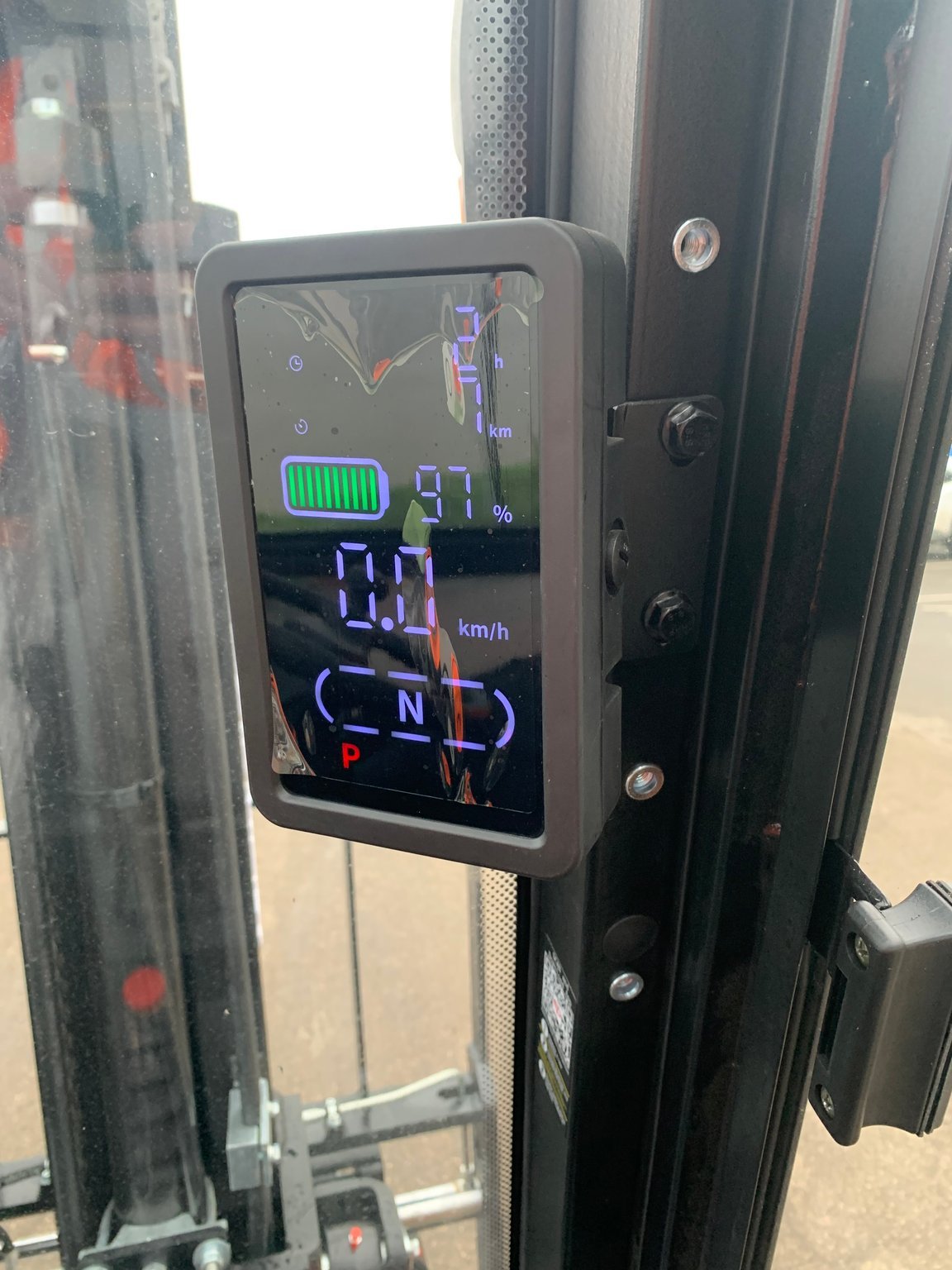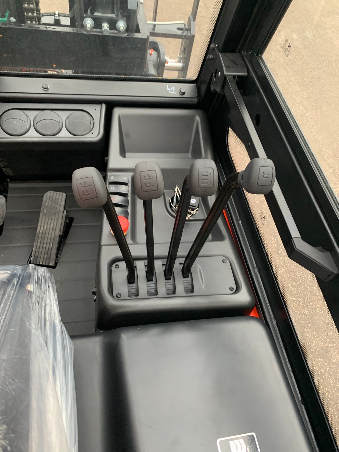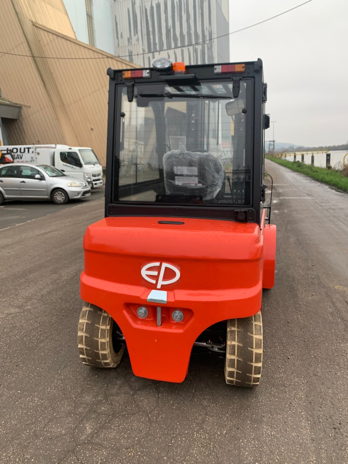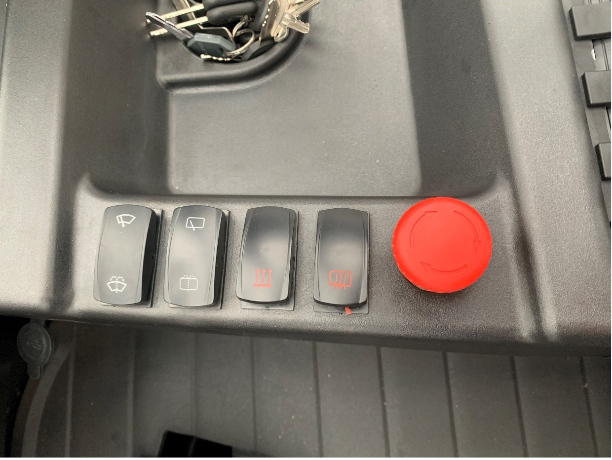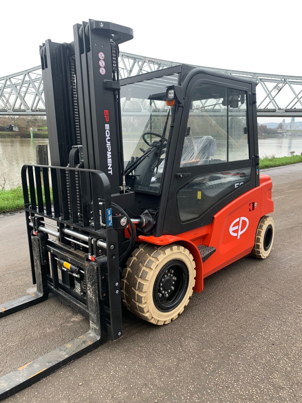 | Équipements | 4 voies hydrauliques, Batterie, Blue spot arrière, Cabine, Dosserêt d'appui de charge, TDL (déplacement latéral), Positionneur de fourches |