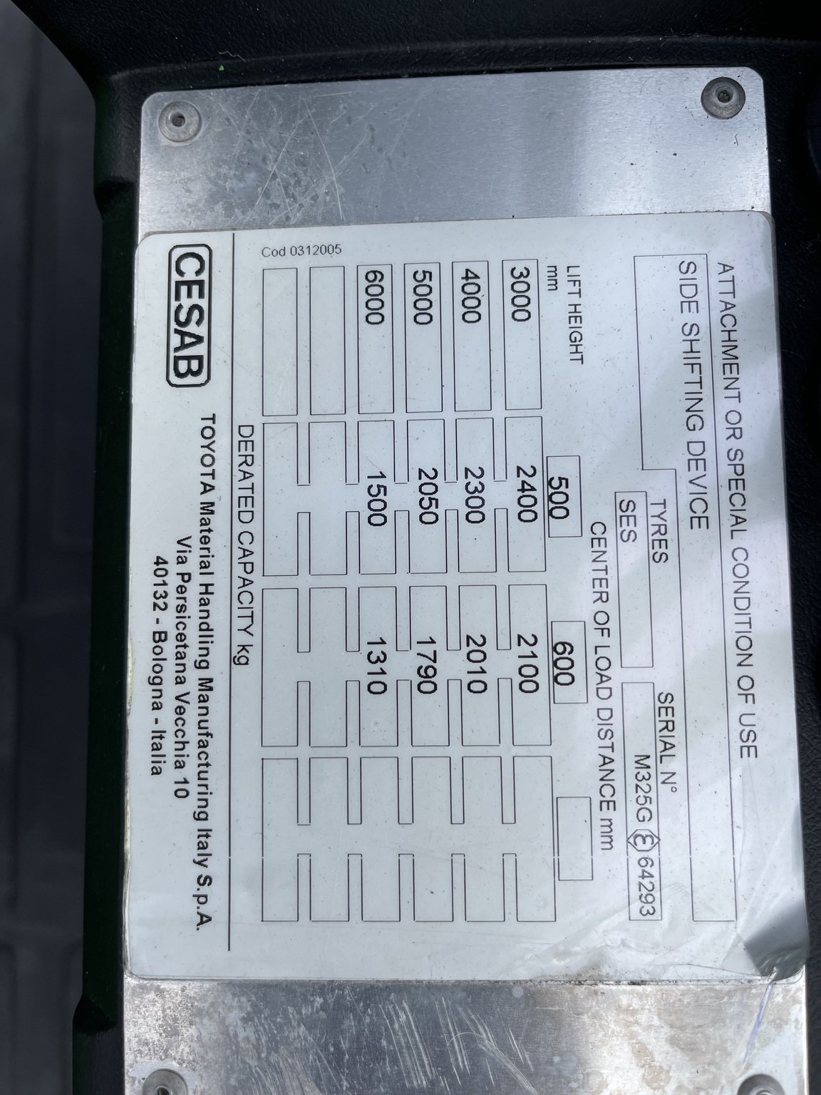 | Capacité de levage | 2 500 kg |