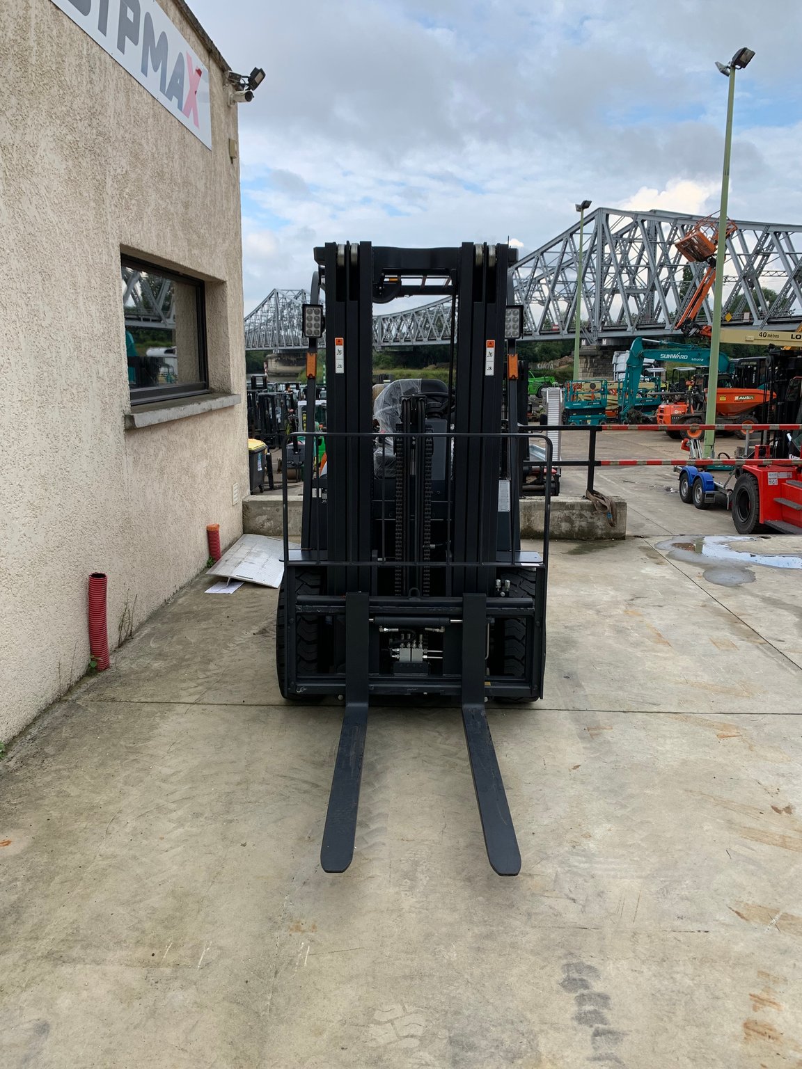 | Équipements | TDL (déplacement latéral), 4 voies hydrauliques, Dosserêt d'appui de charge |