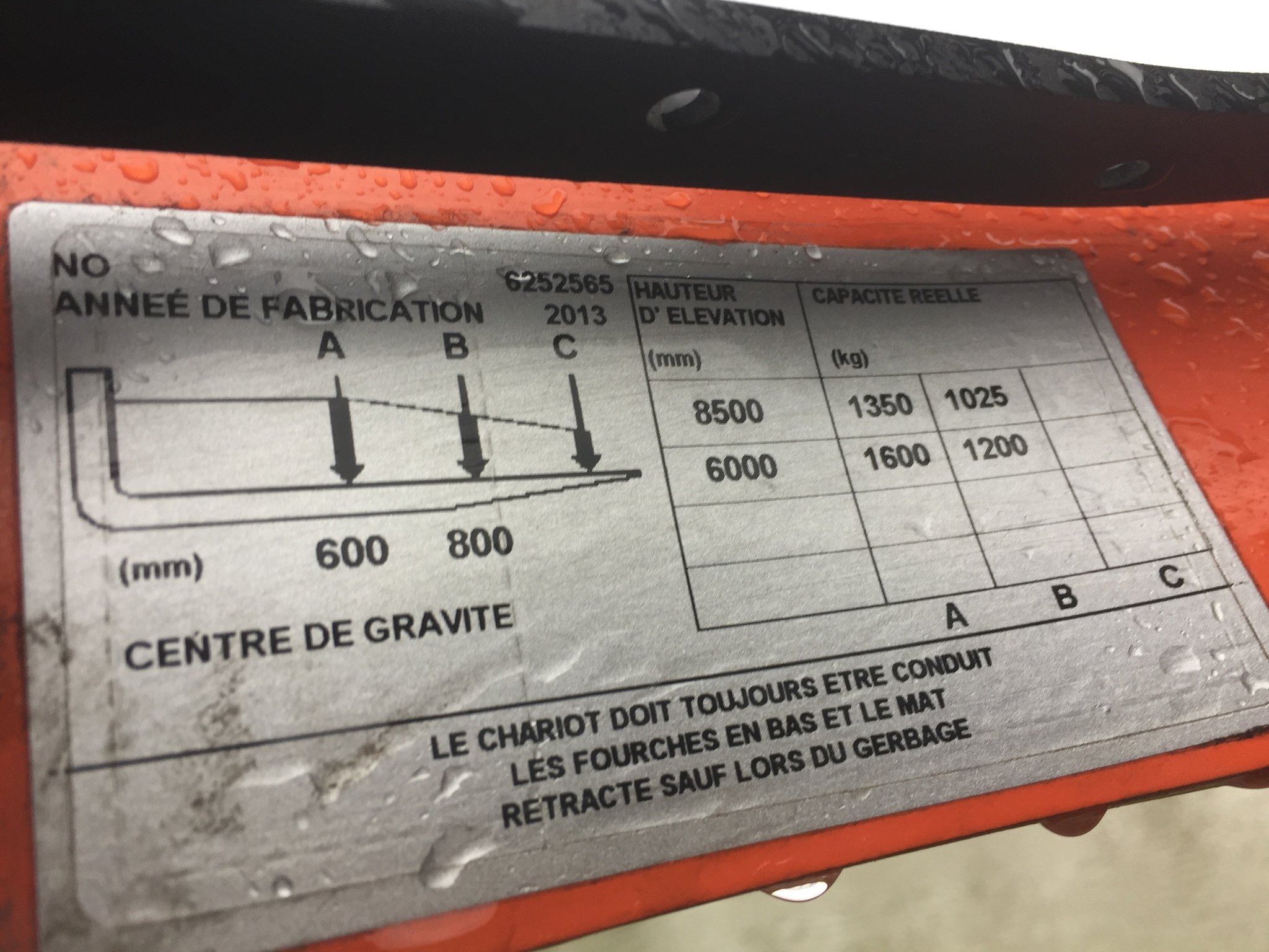 | Capacité de levage | 1 600 kg |
