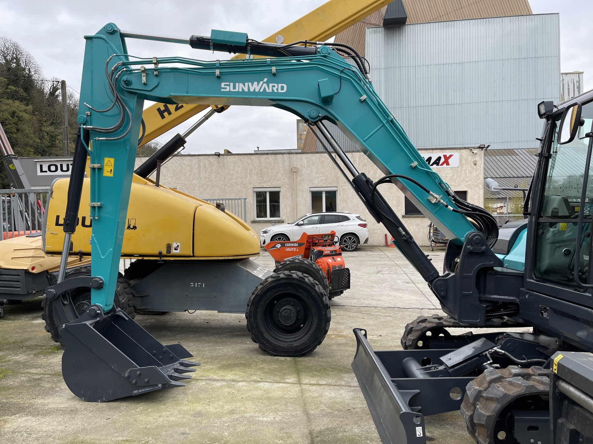 Equipé bras long avec ligne auxiliaire, ligne BRH et ligne pour attache rapide hydraulique.