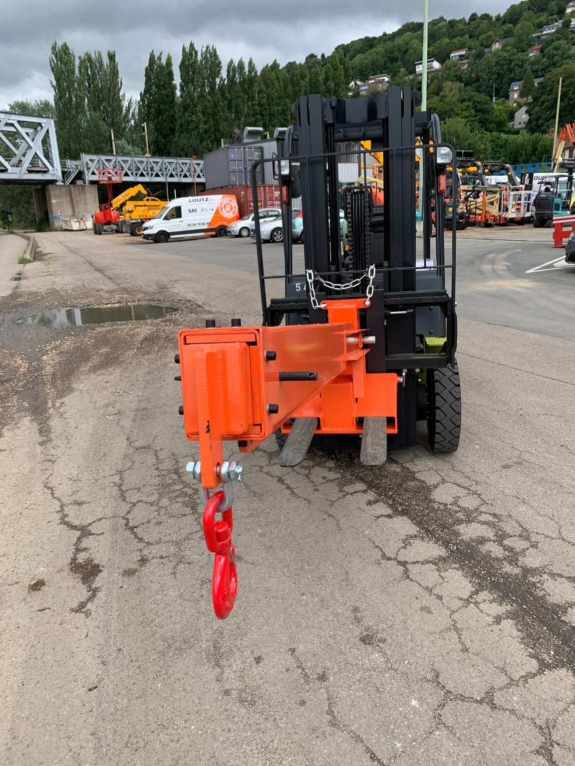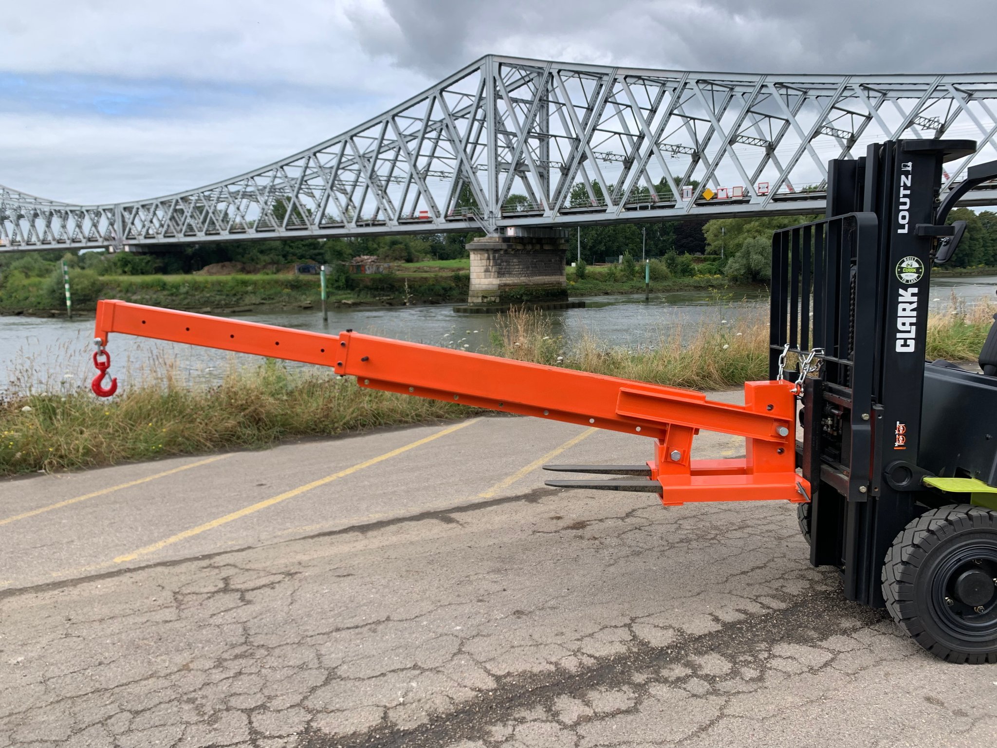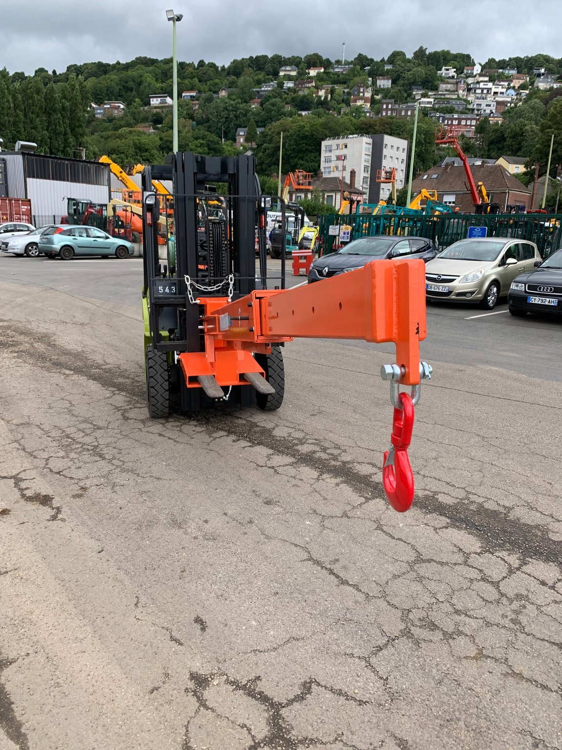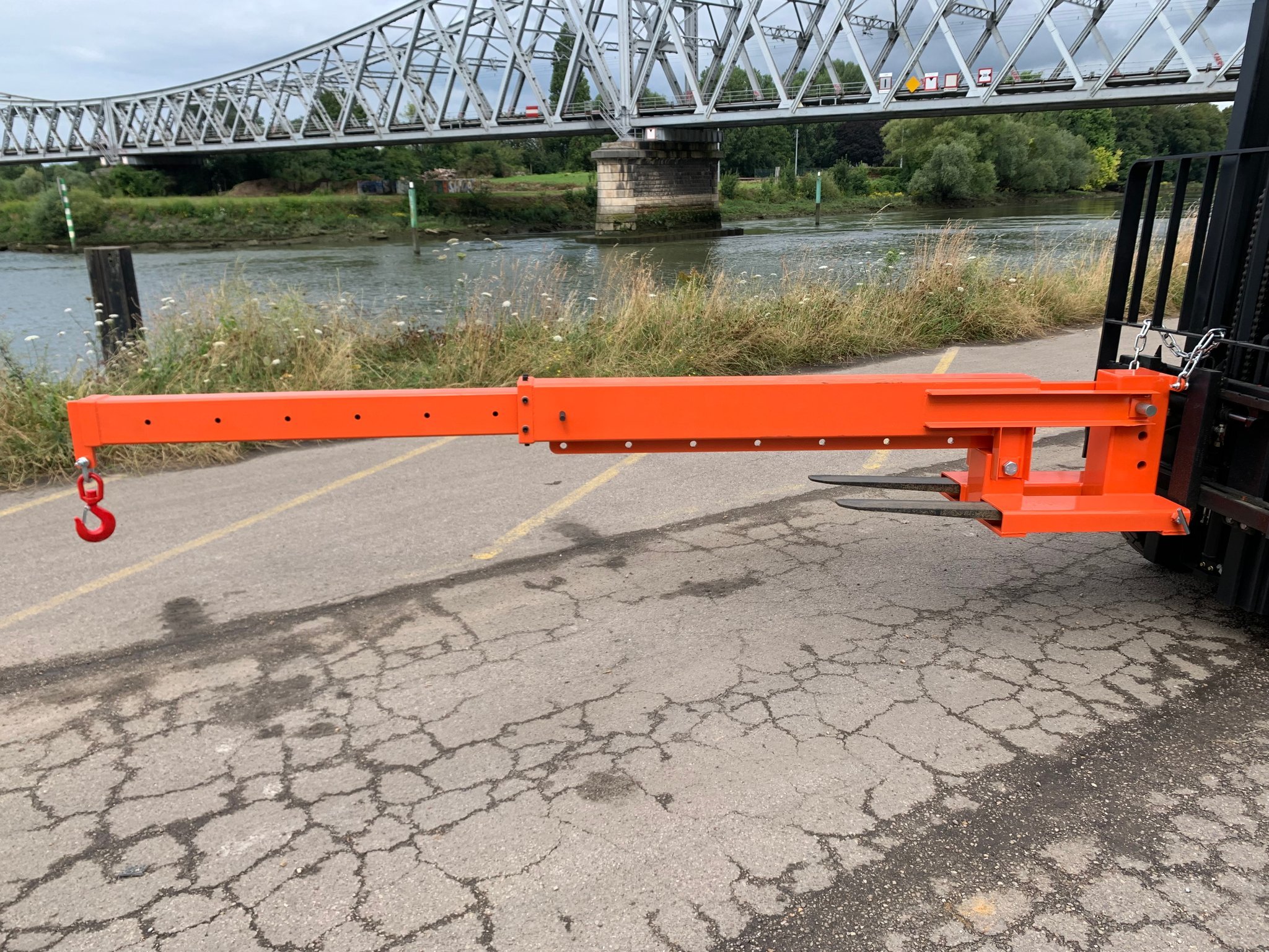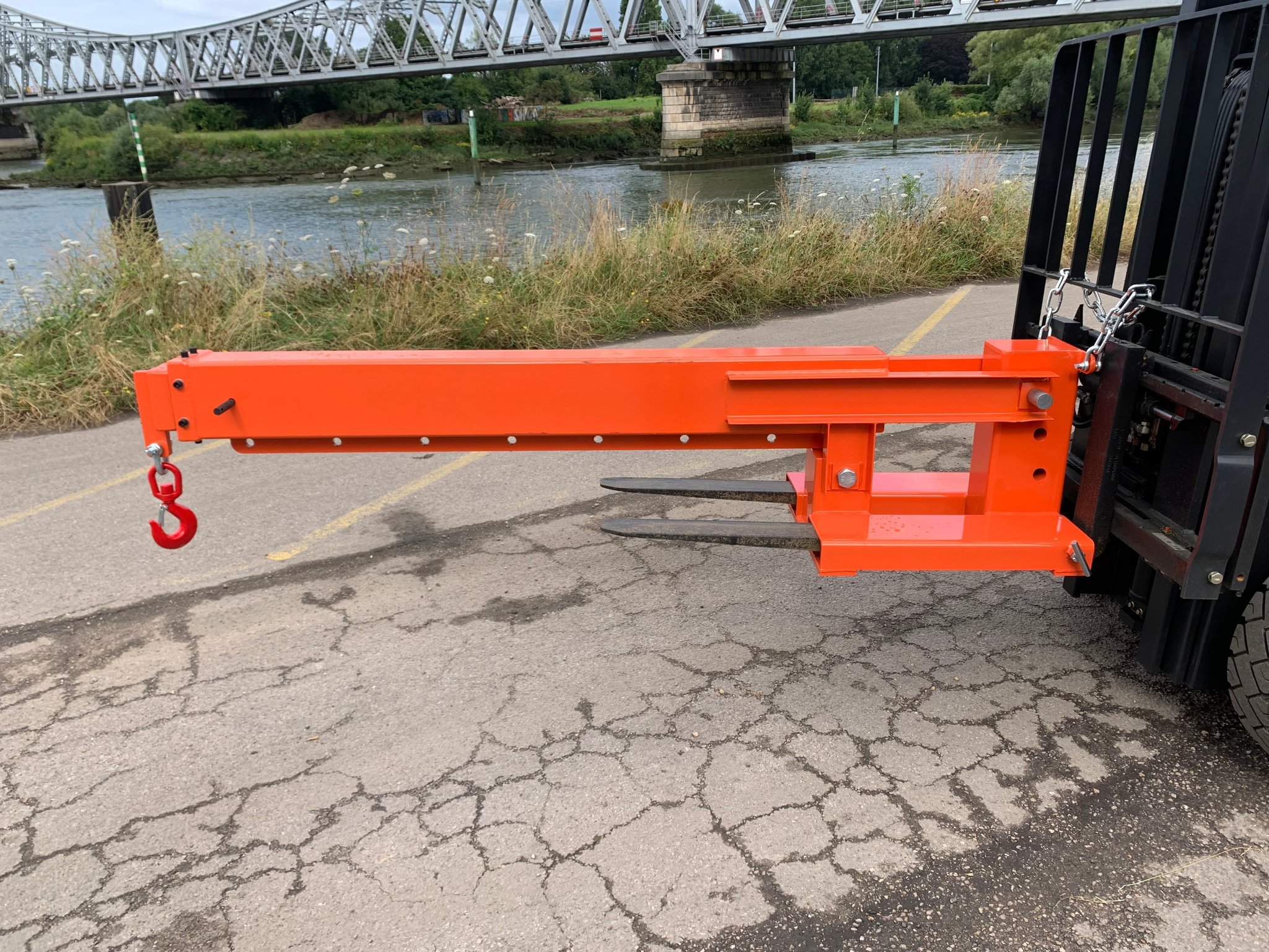-Potence télescopique inclinable d'une capacité allant jusqu'à 3 tonnes selon le positionnement du crochet et l'inclinaison de la potence.
